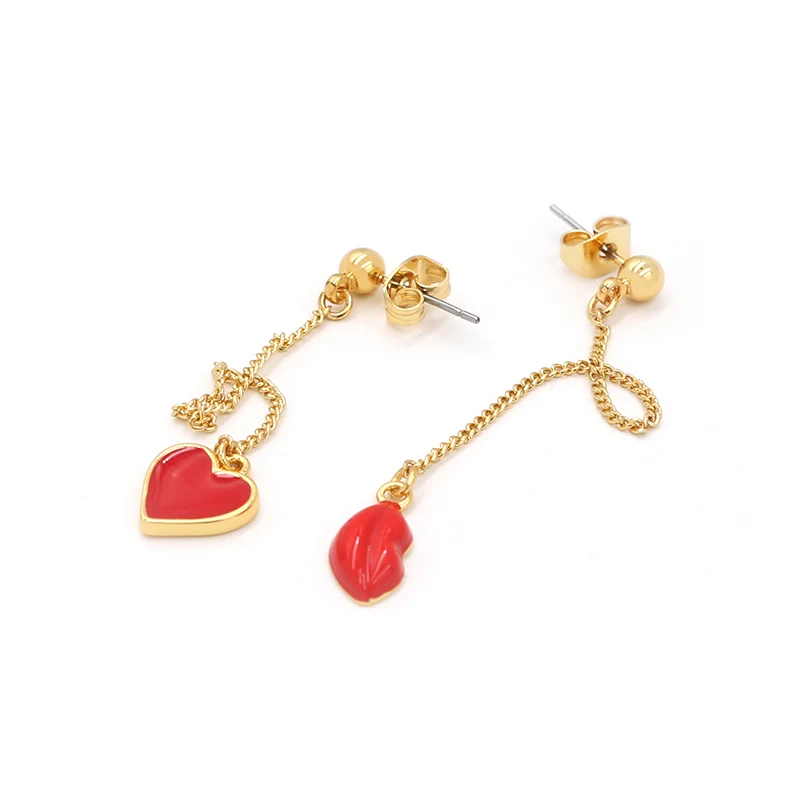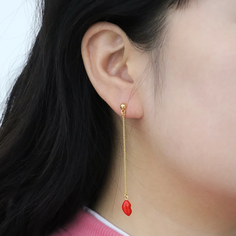 Com 20 anos de experiência na produção de jóias, a equipe de enxergação à mão da nossa fábrica tem mais de 10 anos de experiência e pode controlar a qualidade do esmalte feito à mão. Brincos pendurados com corações de esmalte vermelho longo e gotas labiais também podem ser personalizados em uma variedade de cores e formas.