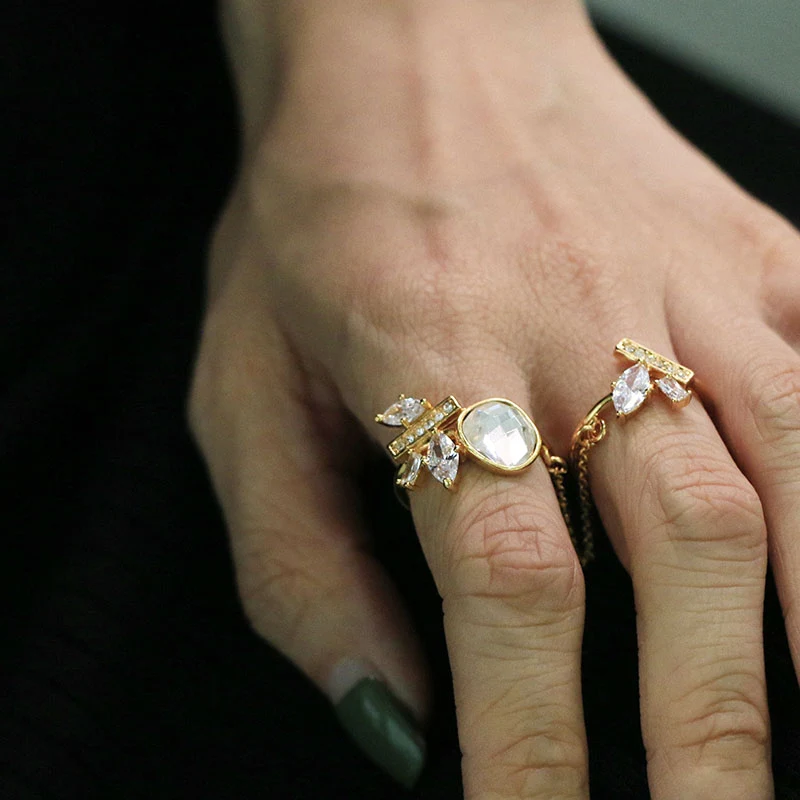 4. Elegância diária: O design leve e confortável do elegante anel duplo de corrente com ouro o torna a escolha ideal para o desgaste diário, adicionando um toque de sofisticação à sua aparência cotidiana.