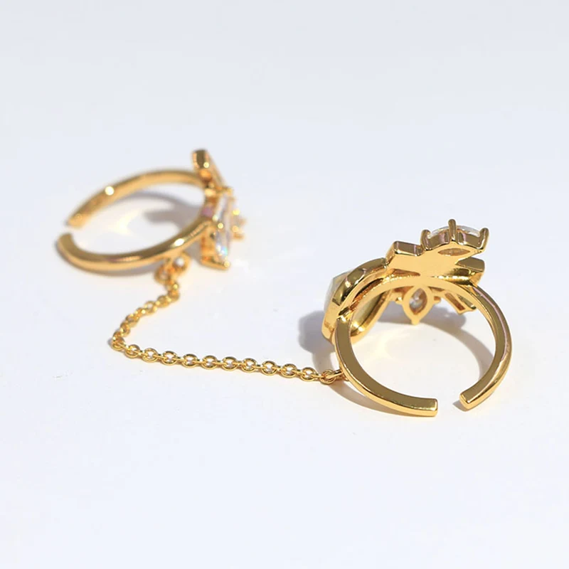 3. Detalhamento delicado da cadeia: a corrente intrincada que conecta os anéis adiciona movimento e sofisticação, tornando o elegante anel duplo da corrente com ouro um acessório verdadeiramente único.